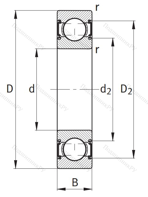 Однорядный шариковый подшипник 6000 C 2HRS